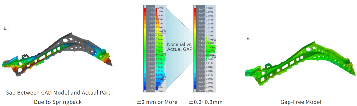 The “Gravity Cancellation” function in Virtual CF clearly visualizes the inherent deformation characteristics of parts. By eliminating the effects of self-weight, it allows you to identify the true deformation factors caused by processes such as forming.