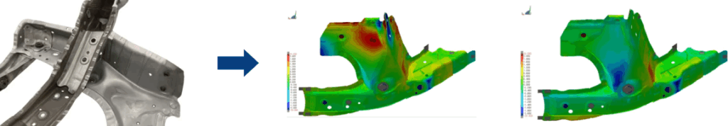 Based on measurement data from actual panels, it is possible to predict panel gap conditions before, during, and after the process. By anticipating deformation caused by spot welding in advance, an appropriate welding process can be designed.