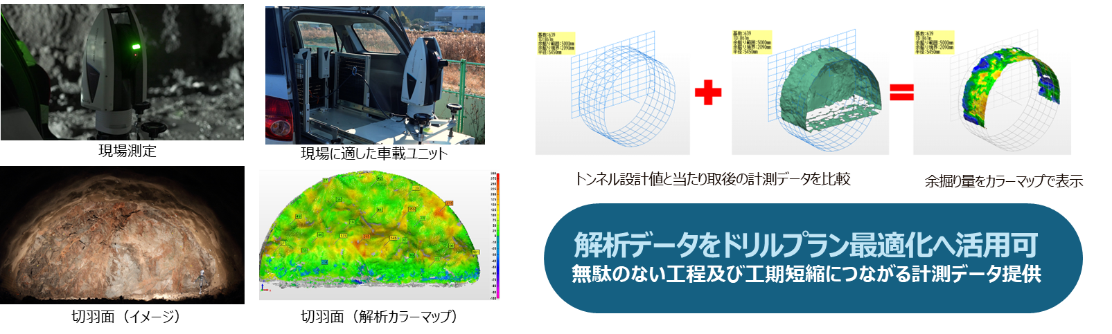 「切羽モニタリングシステムでトンネル高精度計測及びリアルタイム解析(NATM工法最適化)」