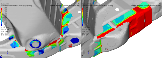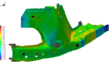 現物パネルの計測データをもとに、工程前後・工程内での板スキ状況を予測できます。スポット溶接による変形を事前に把握し、適切な溶接プロセスを設計できます。