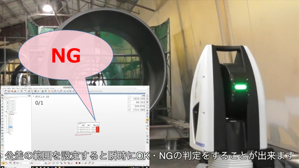 公差の範囲を設定すると、瞬時にOK/NG判定をしてくれます。